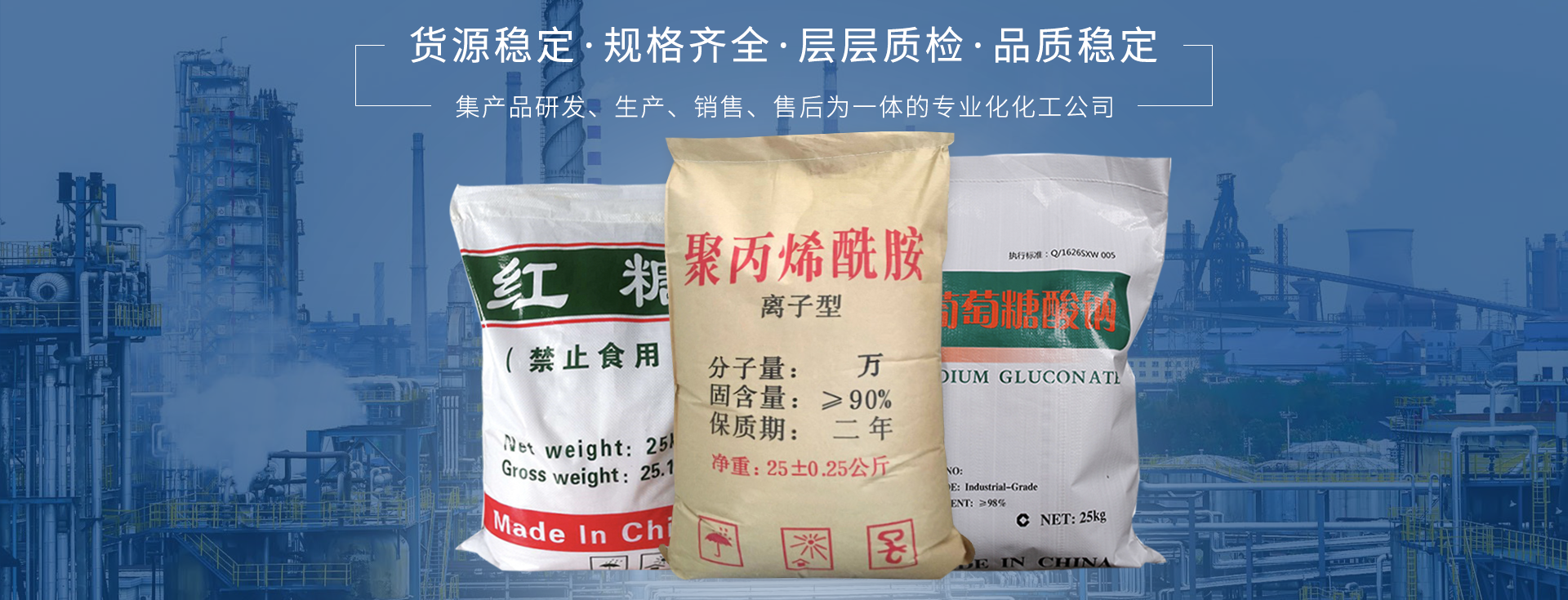公司常年生产销售:聚丙烯酰胺、葡萄糖酸钠、醋酸钠、工业葡萄糖、草酸、柠檬酸、工业白糖、工业红糖、甲酸钙、甲酸钠、磷酸三钠、三聚磷酸钠、磷酸氢二钠、磷酸氢二铵、磷酸二氢钠、磷酸二氢铵、磷酸二氢钾、磷酸氢二钾、焦磷酸钠、焦磷酸钾、钼酸钠、钼酸铵、钨酸钠、等化工产品。产品质量稳定可靠广泛应用于混凝土外加剂、金属...