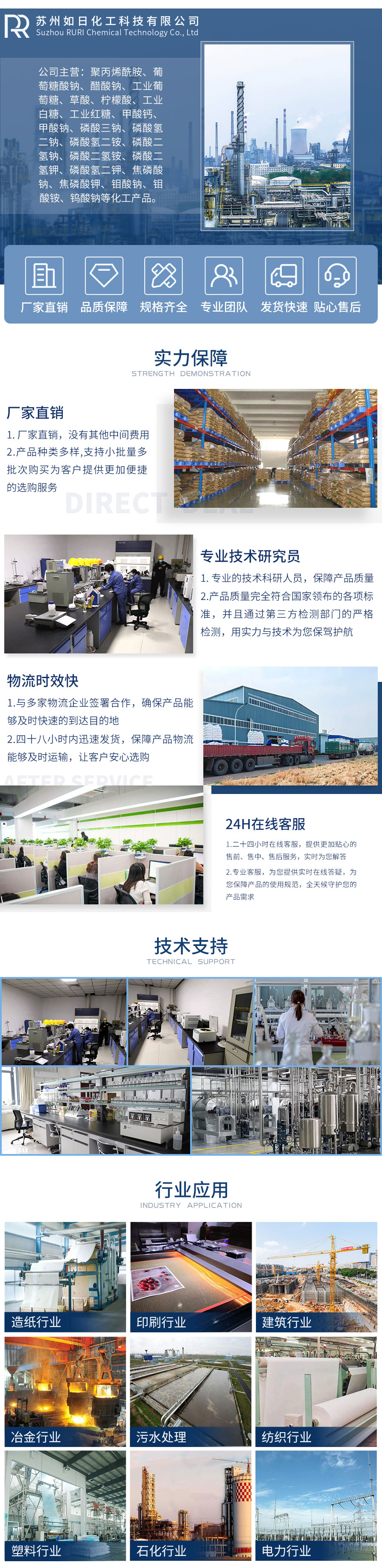 用作软水剂、织物增重剂、防火剂,并用于釉药、焊药、医药、颜料、食品工业及制取其他磷酸盐 用作工业水质处理剂、印染洗涤剂、品质改良剂、中和剂、抗生素培养剂、生化处理剂 食品品质改良剂。 |